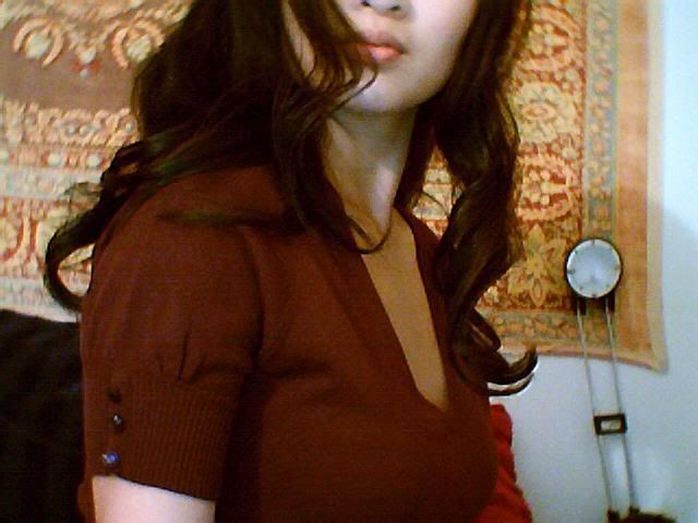 Oh, here’s the new top I bought. I did buy it for work but I think it works with jeans as well. The color is actually somewhere between deep red and purple - wine color, maybe. I bought it because of the sleeves. See the sleeves?