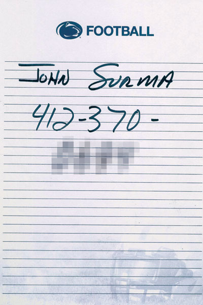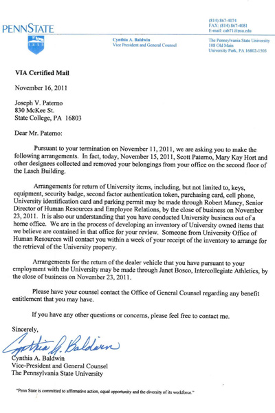 [li]“The Note”[/li][li]Paterno’s Notice of Termination[/li][li]Paterno’s Response to Sandusky Scandal (speech canceled by the BOT)[/li][/ul]