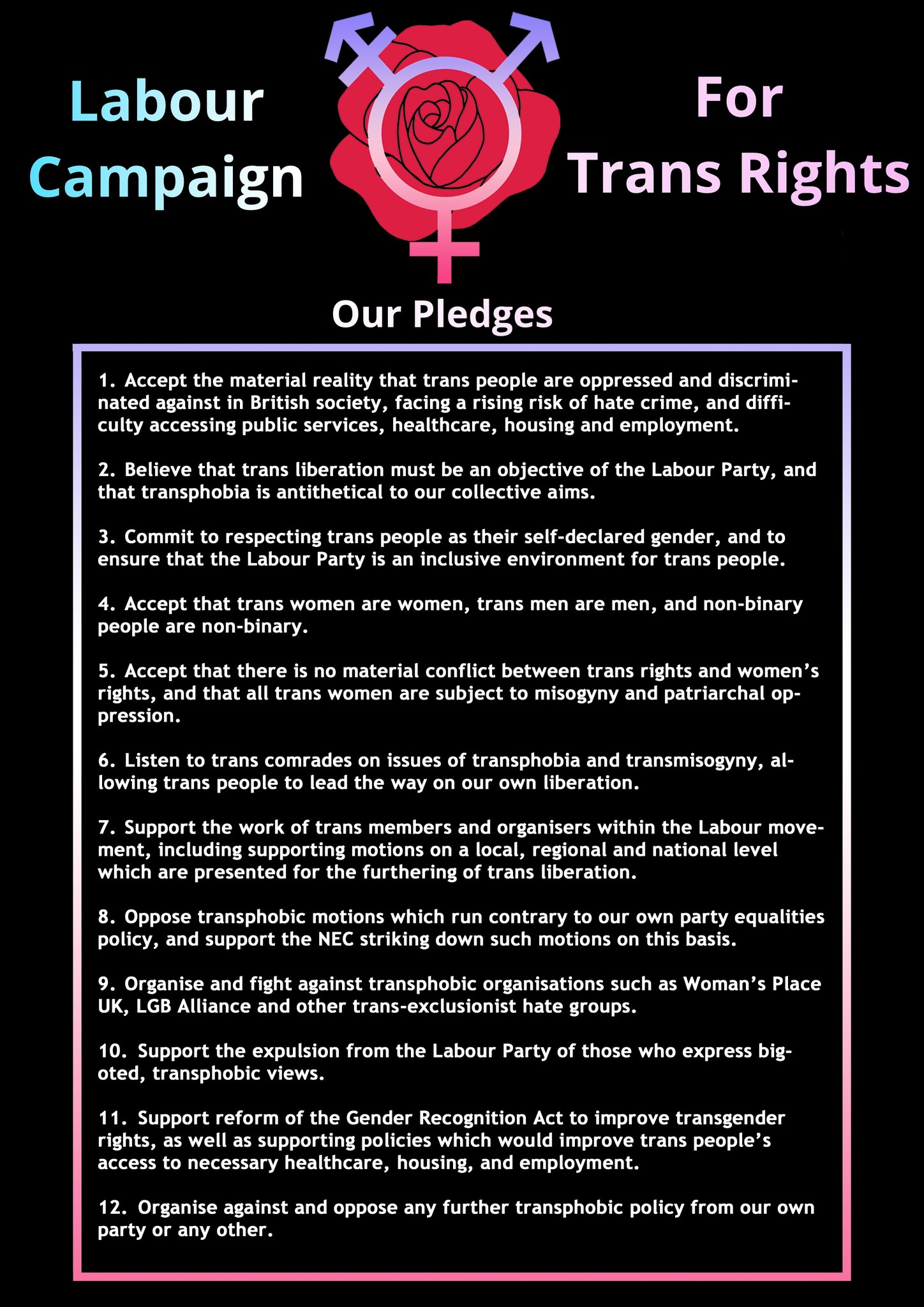I also don’t see a conflict between trans rights and women’s rights, but that I don’t see a conflict doesn’t mean I want to eject anyone who might disagree from my party. I don’t know much about UK politics, and maybe the Labour party sucks (though it sounds like the candidate who agrees with you won, so maybe things are going your way in the UK?), but that one statement sounds pretty innocuous to me.