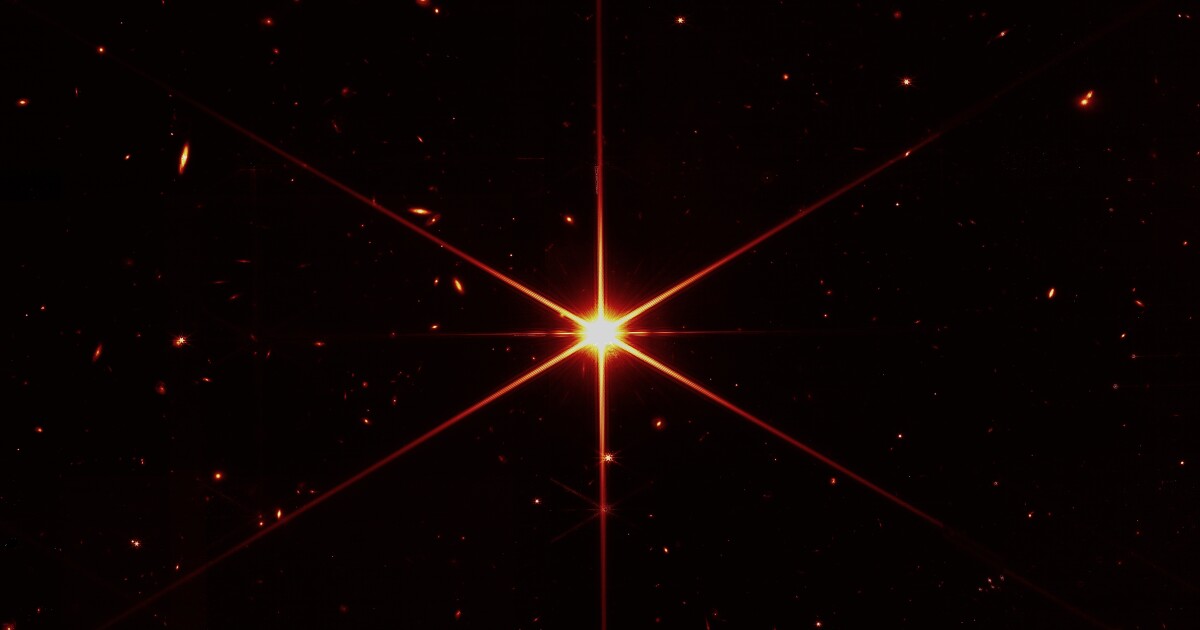 Yes. It’s not lens flare, though–those are diffraction spikes, where light bends around sharp edges in the light path and bleeds elsewhere. In this case, light is bending off of the edges of the hexagonal mirror segments and the struts holding the secondary mirror in place. You can see two sets of spikes. The bright ones with 6-fold symmetry are from the mirror segments and two of the struts (which are at a 60 degree relative angle). There is also a dimmer spike with 2-way symmetry, which is from the final strut (angled halfway between the other two struts, giving a 150-150-60 degree pattern).