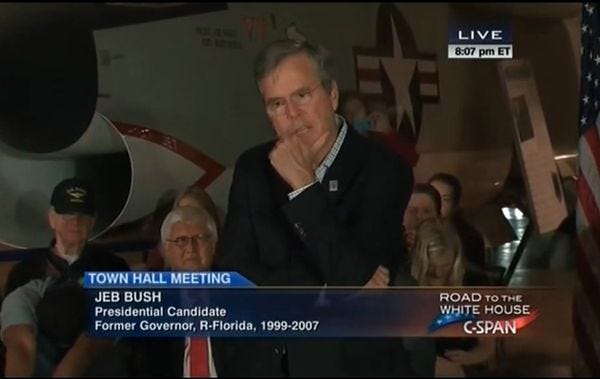Can I just say how much I love love LOVE that Jeb! Bush has turned into a colossal nonstarter? I mean, Scott Walker was the GOP nominee who I most personally feared - and he’s gone now! - but Jeb! has always been the one who has disgusted me the most. I just absolutely love that the GOP primary voters are giving him an overwhelming “fuck you” and saying “no more Bushes.”