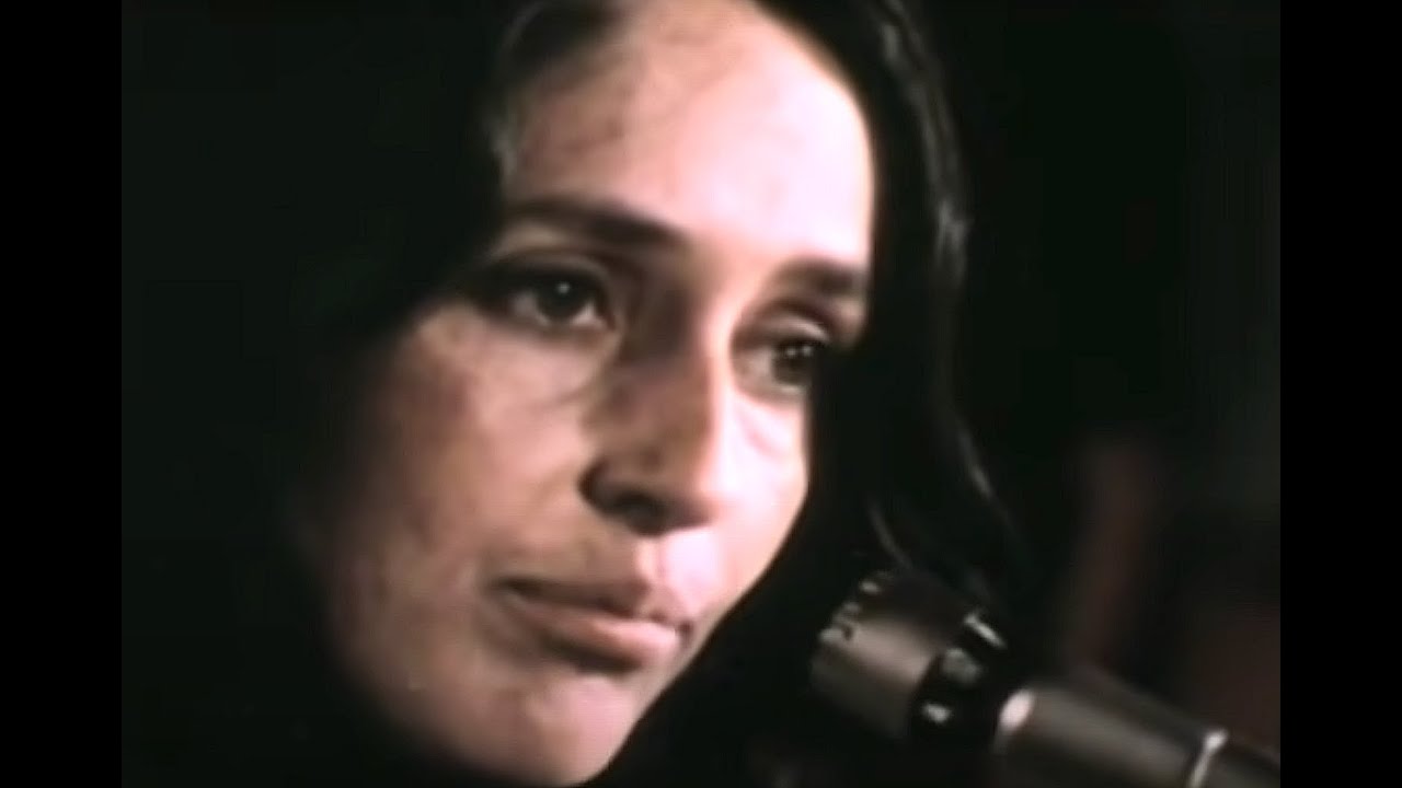 This video is special. Joan is at home, holding her baby son Gabriel and singing with the young Randy Scruggs. I’ve set it to start when she spends a few seconds imitating Bob Dylan’s voice!