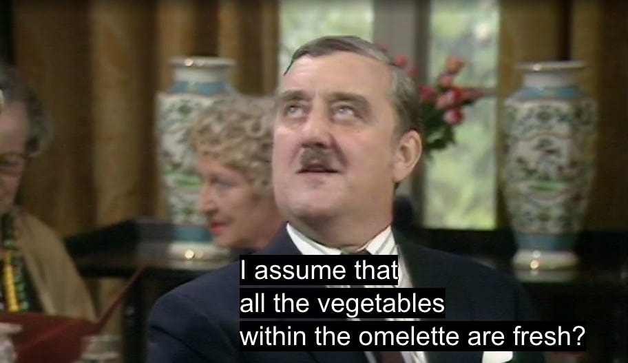 I must confess that as much as I think every single episode of Fawlty Towers was a gem, that particular one – The Anniversary – was a notch below the others. I found it rather bleak in comparison, and it really stretched the suspension of credibility granted by artistic license beyond the breaking point. If I’ve watched most episodes more than a thousand times, which is likely, I’ve probably watched this one only a few hundred times!