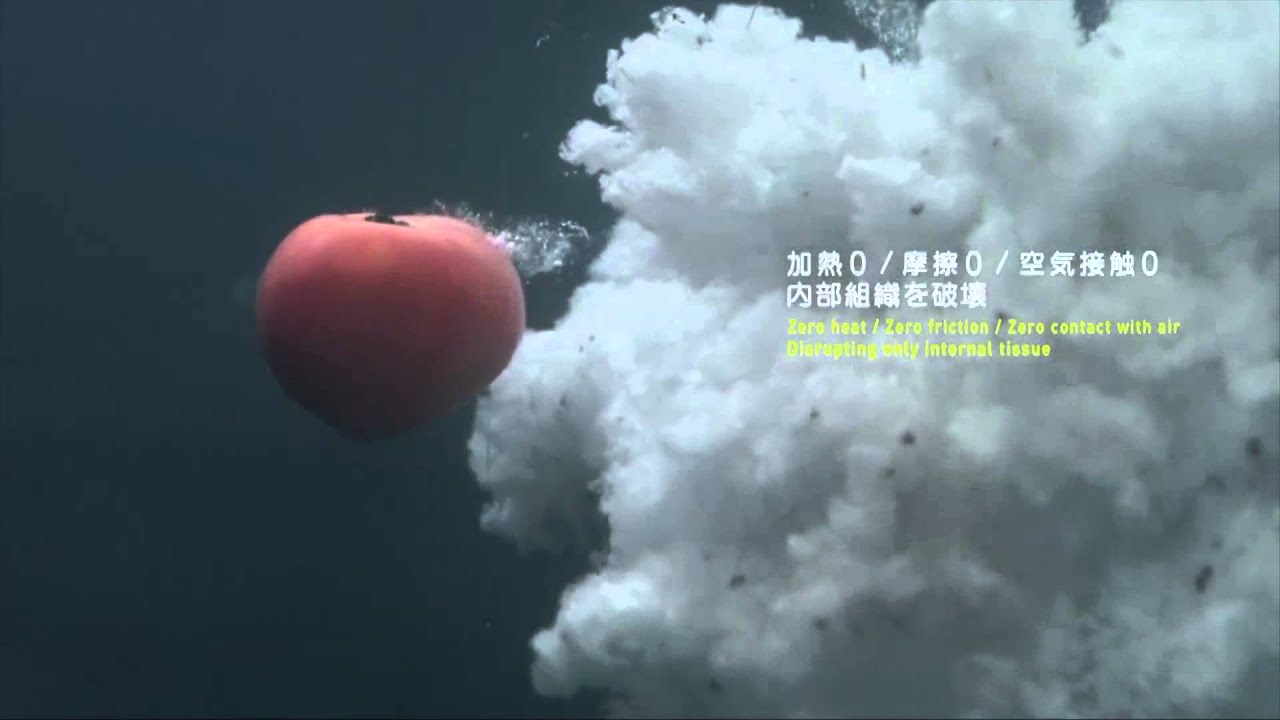 I’m not arguing with the video. But I see a substantial difference between liquifying the interior by inserting a tool inside and doing so just by outside force. The tool is only going to be acting on the interior while the force will be acting equally on the whole melon. So I don’t think there’s a method where you can apply enough force to liquify the inside while having the rind intact. My speculation is that any motion which liquifies the interior 100% will also liquify the rind something like 90%.