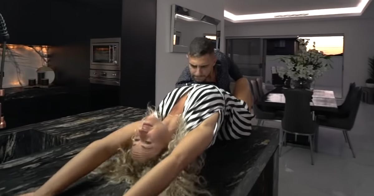 It is very music video in its approach; rather than just a camera man going through the house, it showed a young man arriving home, being greeted by his young wife. They greet and go more or less dancing through the house, accompanied by enormously autotuned music. At one point the man jumps up on the kitchen counter and walks along it, and then he jumps down, picks up the woman, and sets her on the counter. They break from that, and both continue on through the house, touching everything.