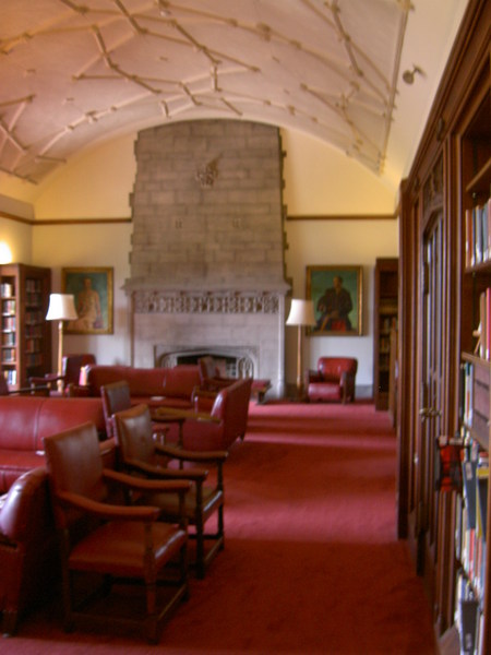 I’m partial to quiet, intimate reading rooms with comfy chairs, being able to put my feet up, fresh air, a sunny view for reading but without sun on the stacks, a fireplace in the winter, large tables upon which I can spread out my work, and wireless access. The University of Toronto’s Hart House Library is as good as it gets for me.
