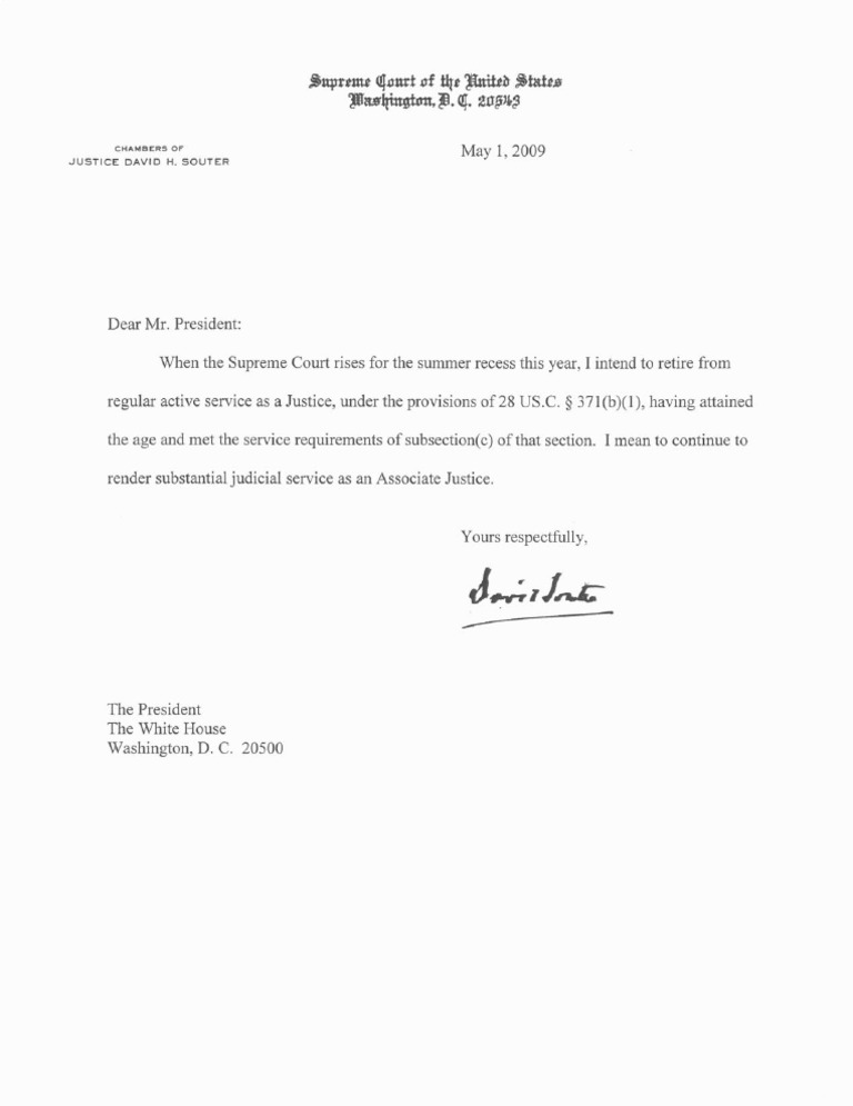 Cite, please? I’ve never seen a SCOTUS resignation letter written to the Chief Justice, but have often seen them written directly to the President.