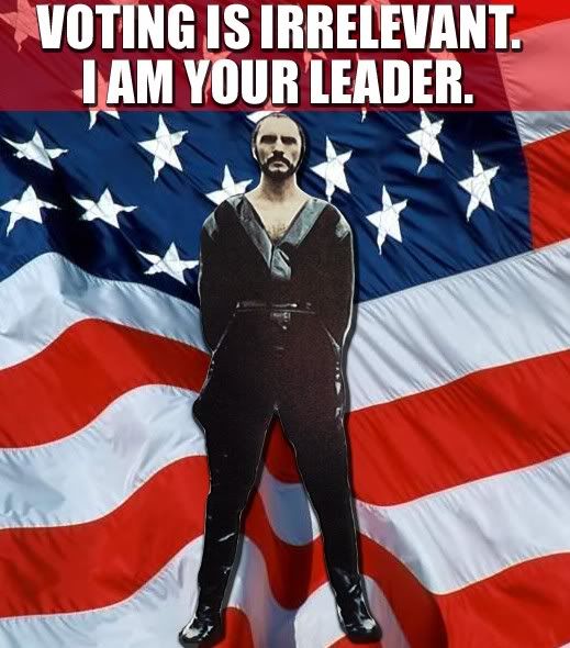 ::General Zod, the evil Kryptonian dictator from Superman II, uses his heat vision to disintegrate The Chao::