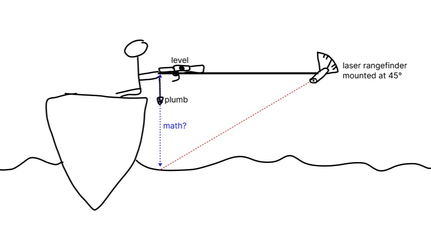 I was also thinking… for measuring water with laser… you should be able to just have some sort of floating mirror (or white plate of some sort on a rope, almost like a secchi disk) that you can lower onto the water surface to measure its distance.