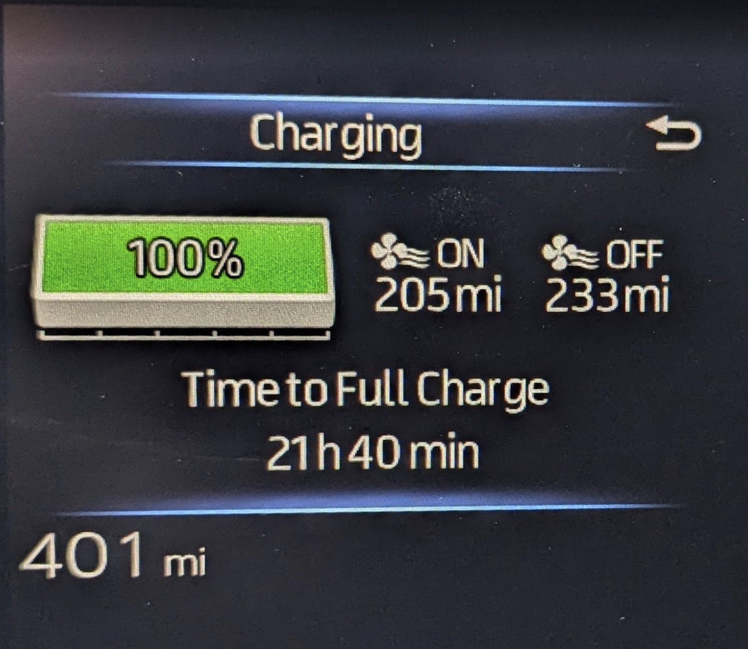And even with 1.8kW charging, the car needs another 21 hrs to go from 100% to full… whatever that means…