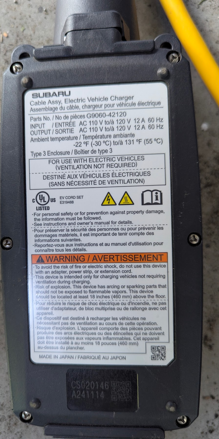 If I absolutely had to choose one or the other, I’d probably go with the J1772 extension. A NEMA 5-15 or 5-20 extension cord can and usually will be UL listed, but that has limited value considering how utterly terrible the plug design is: the ground doesn’t necessarily make contact first, the current-carrying prongs are exposed and can be touched while it’s plugged in part-way, and the weight of the cord largely pulls on the contacts (instead of the plug body itself). It’s entirely too easy for a plug that was built to spec and properly listed to shock the user through misuse or start arcing due to wear. Other countries recoil in horror at our plugs, but they’re not going anywhere in our lifetimes thanks to the sheer size of the installed base.