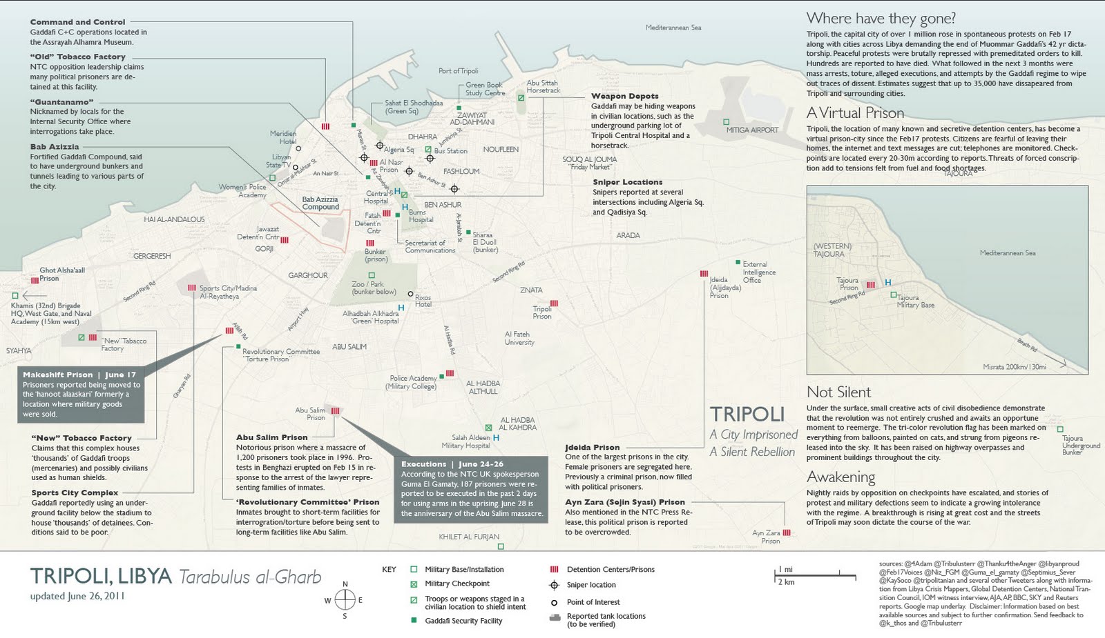 Updated map. Blue is rebel control, red is contested. Rixos is the journalist hotel. http://i.imgur.com/oS4Nfl.jpg Scribbles are newer than spraypaint dots.