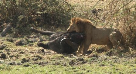 Lion killing buffalos