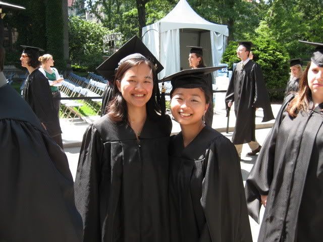 Anyway. I just picked up my cap and gown for graduation today. I think that this might be the most unflattering garment I have ever worn in my life. It’s like it’s been scientifically engineered to make the wearer look like a giant douche. Do people usually get their gowns tailored or are they supposed to be all baggy and shapeless? The sleeves are wider than the legs on my JNCOs when I went through my mid-nineties fashion victim phase. And the cap! The frickin’ cap adds like eight pounds to my face. I look like a cabbage-patch doll when I put it on. Is there any way I can style my hair than will minimize the awfulness of the cap? Maybe if I comb it down over my face like Cousin Itt…