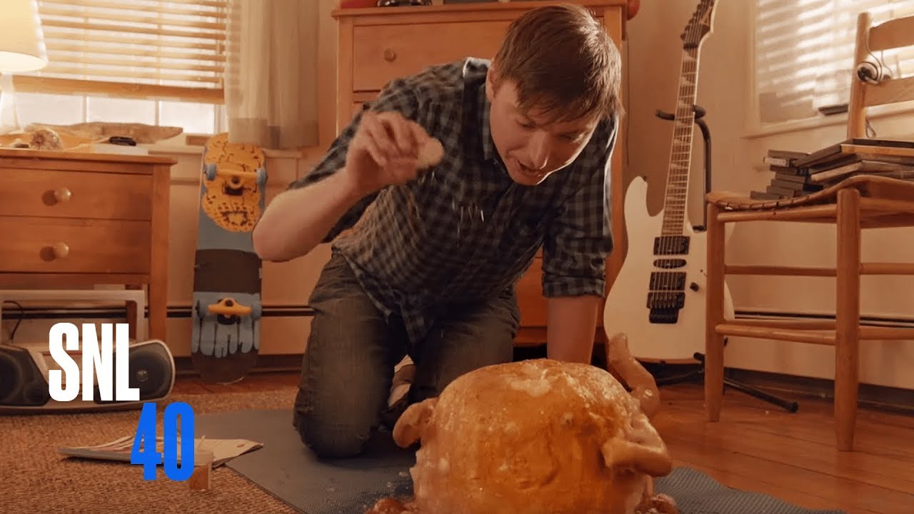 A group of around 8 to 12 characters supposed to be children sitting around. They discuss personal robot (or somehow artifical companions) somehow one of the group (which is an AI companion) decides that they are no longer needed and melts. Then one by one during the sketch supposedly “real” “children” melt, leaving only one behind. Who melts.