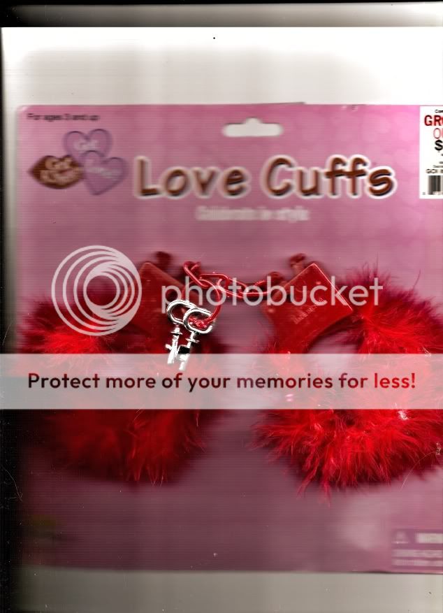 BTW, the white lettering below “Love Cuffs” says, “Celebrate in style” and in the lower righthand corner it (inevitably) says,