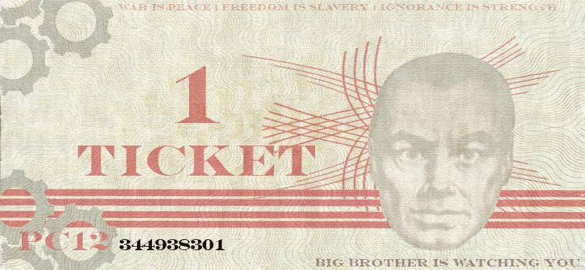 About Big Brother’s head. I’m trying to make his head non-dominating. I know I’ve basically achieved the opposite of that, but I wanted to instill the feeling of his always being there, a subtle thing in the background who’s always got his eyes on you, even on your ration tickets.