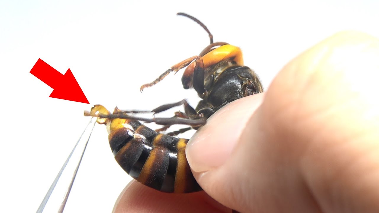 Or bitten. check out the jaws, those murder hornets can reportedly extract a good-sized chunk of flesh with each bite.