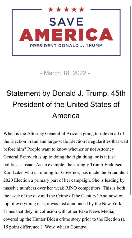 Probably because it’s not real. I checked Liz Harrington’s Twitter history and these are the statements Loser Donald issued on that date;