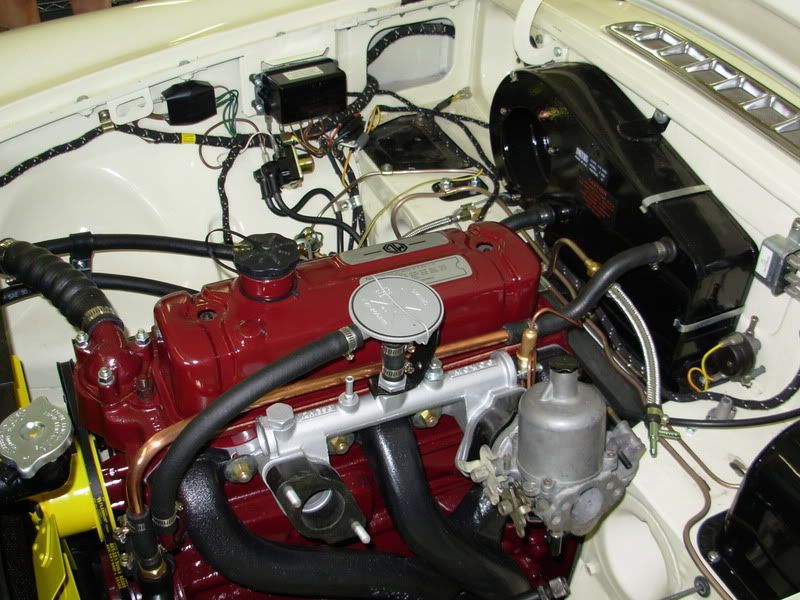 It works OK except in heavy traffic. It really needs the airflow. I think the radiator is new, and is a higher-efficiency one than the original; but it looks like an original. (It’s possible it’s original and has been overhauled, but ISTR buying a new one.) I am trying to keep it as ‘original’ as possible. I did have it converted to negative-earth, and I have a Pertronix ignition that looks original. The wiring harness is new, but it’s a copy of the Lucas one and the guy who put it together even put a Lucas sticker on it. (You can see it here on the harness near the voltage regulator.)