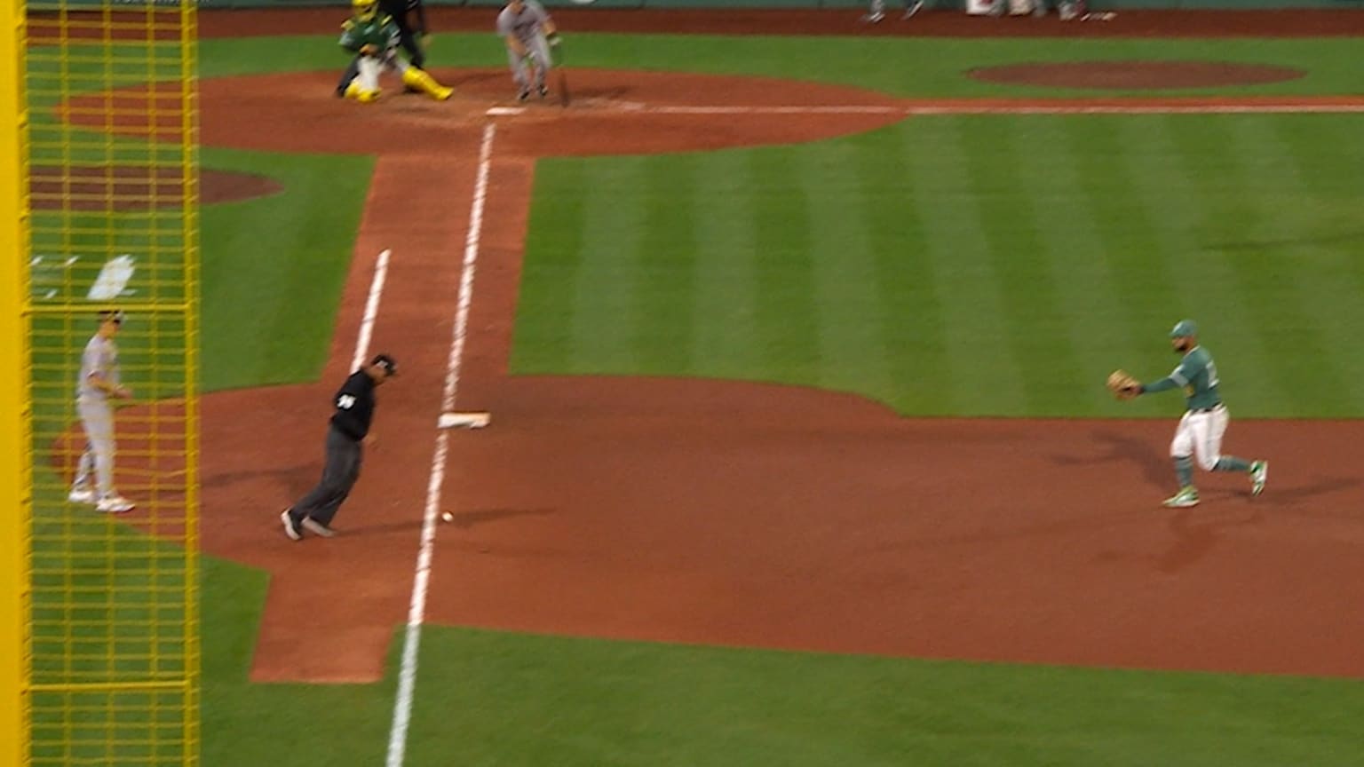 DJ LeMahieu hits a foul ball down the right-field line and the call stands after a Yankees' challenge in the top of the 10th inning