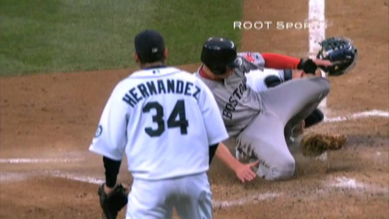 Pretty much he would have been in the act of catching the ball when he got drilled in the bead. There would have been no perfect form blocking the plate just a crumpled defenseless catcher. Not that the run mattered.