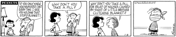 Actually the “take a pill” thing was a line that my friends and I use; it’s from an old Peanuts cartoon