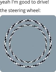 Oh wow, imagine actually making a double steering wheel that looks like that. The illusion might only work in the dark, when it’s harder to see anything besides the white spiraling stripes.