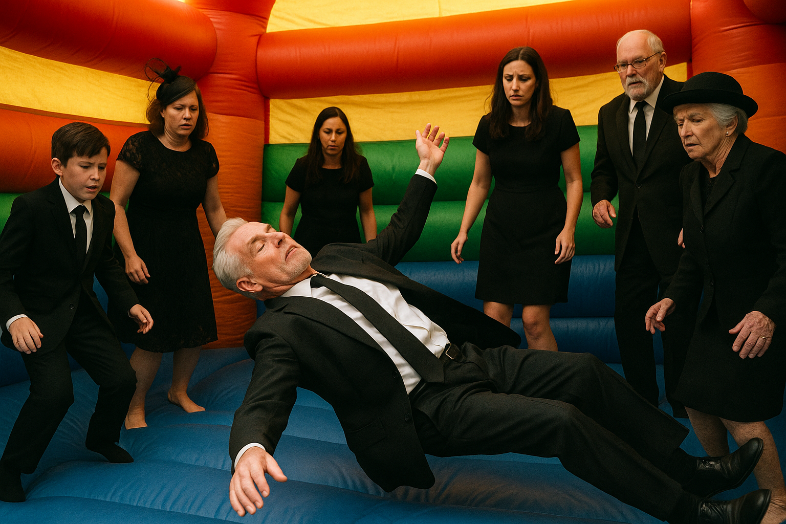 I want a bouncy house at my funeral. And I want to be in it too. When all my friends jump, my lifeless body will bounce with them.