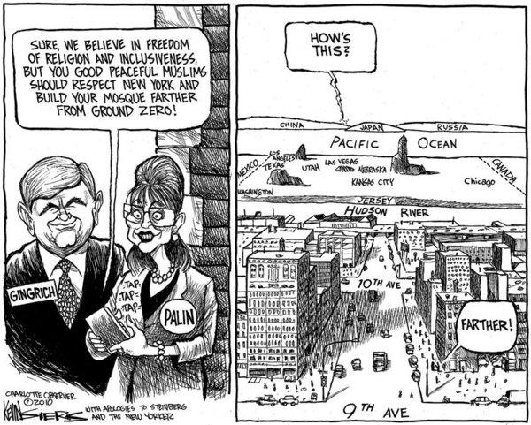 *Whatever you may think of the proposed mosque and community center, lost in the heat of the debate has been a basic question: Should government attempt to deny private citizens the right to build a house of worship on private property based on their particular religion? That may happen in other countries, but we should never allow it to happen here. *