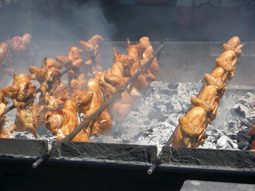 Except for this one fair (held in early February), nobody else has these chickens cooked the way they are supposed to be cooked. The gas machine with spits is the usual way.