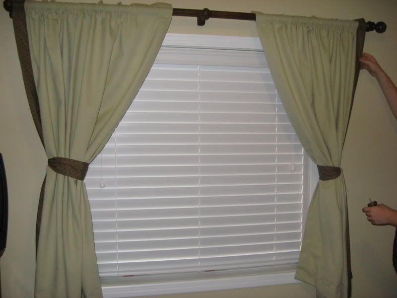 We also put up curtainsin the guest room, but the picture is from when we had them on backwards. The stripe that’s on the outside in the picture is supposed to go in the middle. :smack:
