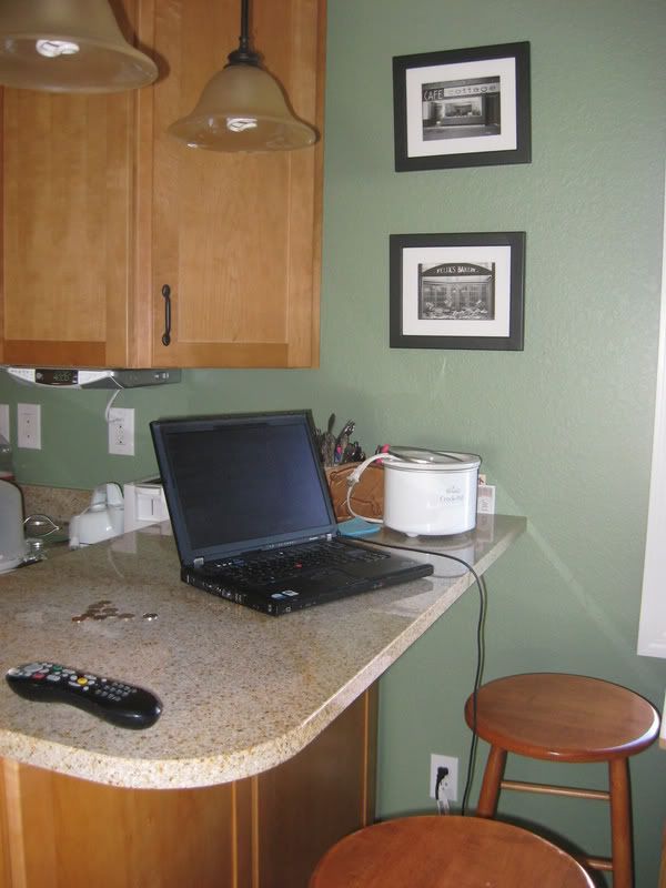 Home. Waiting to find out if I will have company for dinner, or if The Boy is stuck with yet another late night at work.
