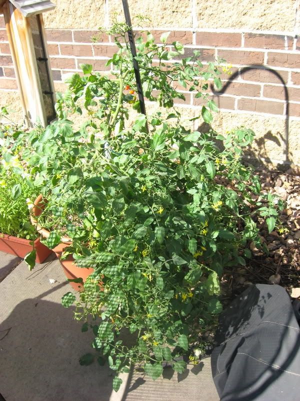 Our grape tomato plant went a bit crazy. It is staked up, but we didn’t have a cage for it. Lesson learned for next year!