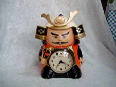 The video is loud. I’ve had this alarm clock for years now. Since he’s a samurai, I assume it’s Japanese. If anybody could translate I’d be very greatful.