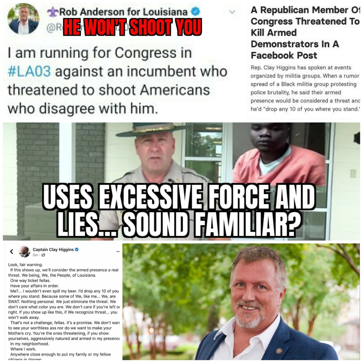 But Higgins showed a picture of the people who he said would be shot in Louisiana because they were a threat; it was a group of armed Black men.