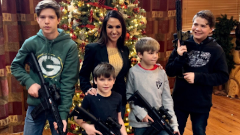 The logical person inside me wonder where these families get these weapons. BoBo’s got several thousands of dollars of props there (assuming they are real). And they all look like AR-15 variants, so it’s really a waste of money to buy four of the same (unless you’re planning on going into combat, or are forming your own A-Team. Da duh dunt dah!). Same with the OK guy.