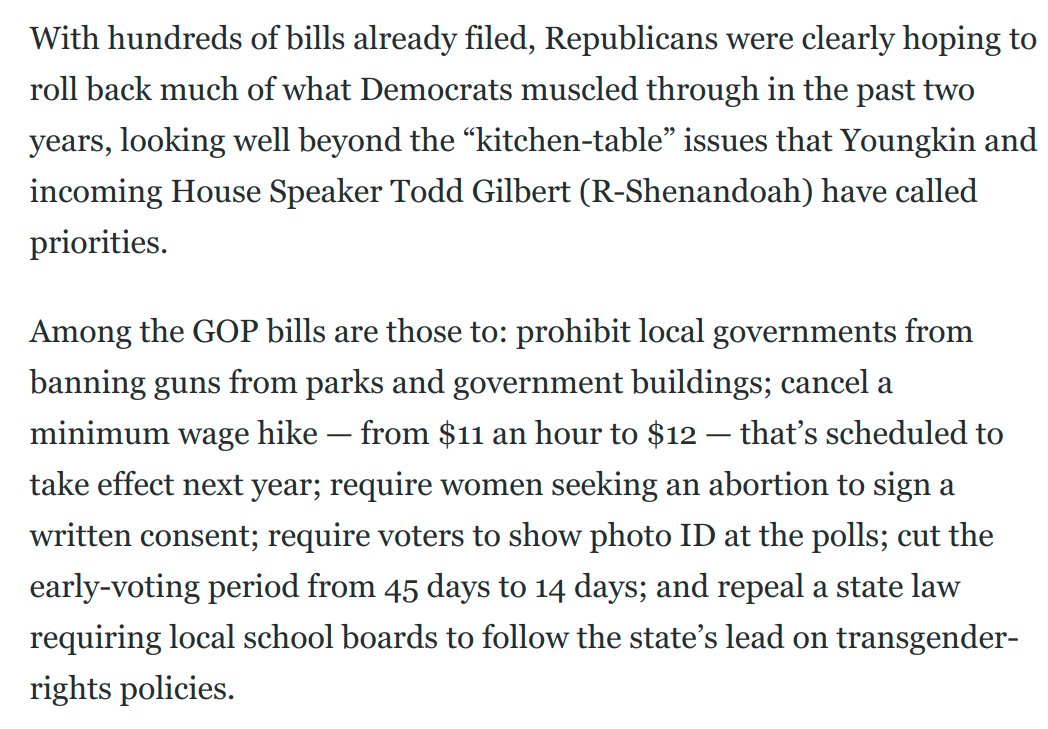 The “moderate Republican” image that helped sell Virginians on Youngkin (and his new Administration) actually worked to install a fairly extremist right-wing agenda. We will be seeing more and more of this unless Democrats find a way to communicate the truth behind the ‘moderate’ image.