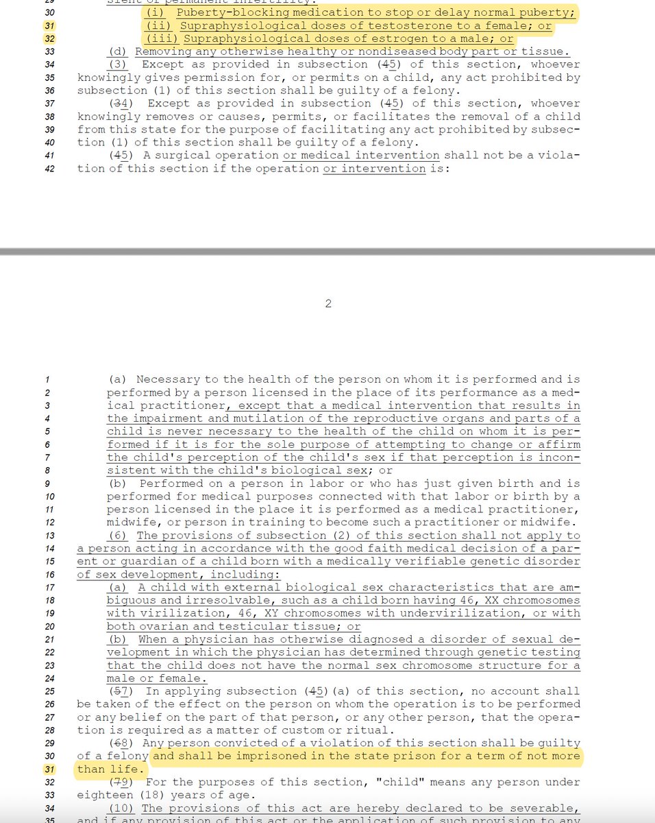 Idaho’s anti-trans law has a similar “don’t leave the state” provision. Look at item 4 (not highlighted in the picture, but important):