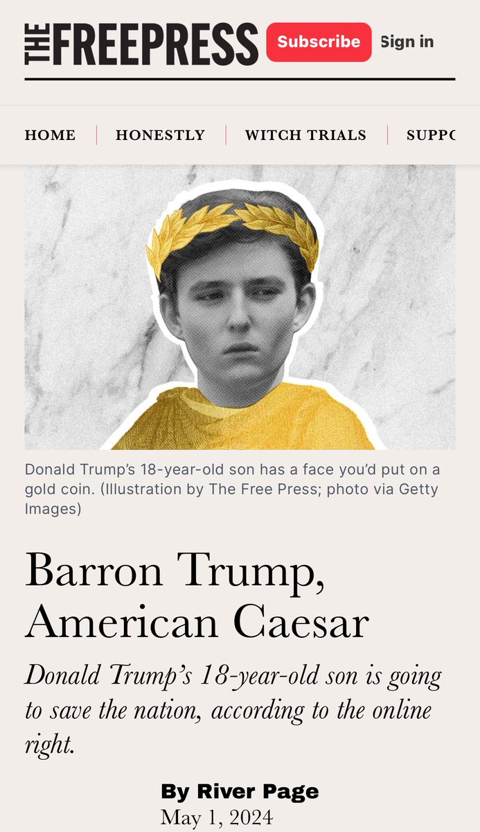 The latter are making a valiant effort to worship Donald, but it’s a tough sell. So perhaps both they and the less-“Christian” Q folks can more happily take to worshipping Barron.