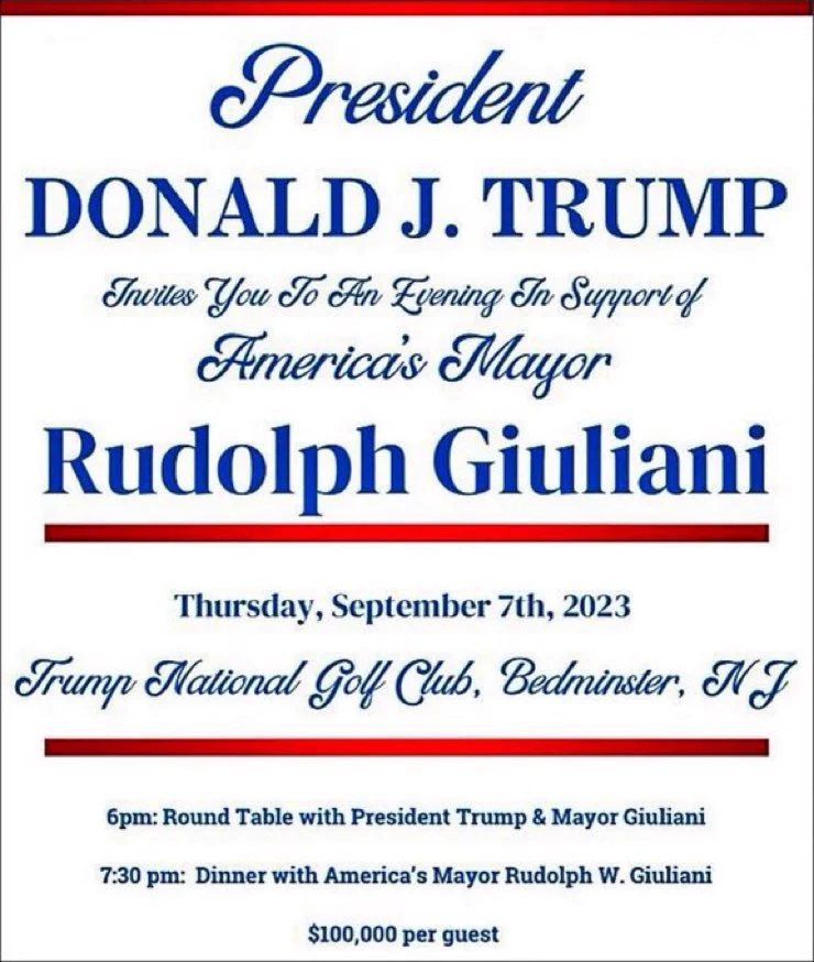 The invitation posted above clearly refers to a “round table” with Trump and Rudy, and a subsequent dinner with Rudy. Were I to drop a hundred grand on this, and have Trump not be there, I’d be livid.