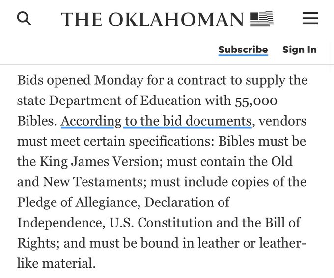 Now, where on Earth are we going to find a bible, bound in a ‘leather-like material’ that also contains the Pledge of Allegiance, Declaration of Independence, Constitution, and The Bill of Rights, and also has to be the KJV, ya know, for ‘historical accuracy’.