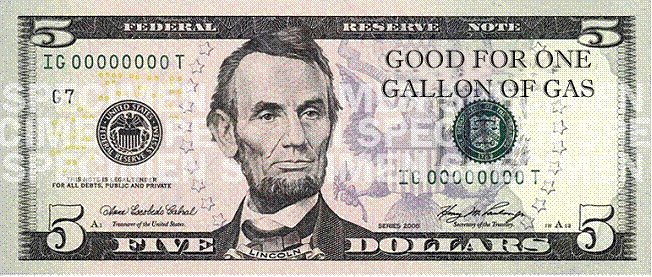 Which was kind of intellectual overkill over a light gag about how a fiver could be redeemable for a gallon of gas. That sample was along the lines of the quip from an earlier thread on the new 5-note that proposed it say “U can haz cheezburger”; or the c. 1990 gag about the then-still-planned Euro note, that proposed that besides raised dots for the blind, it also include a “visual aid for Americans” in the form of a picture of hands holding up fingers to count off the value.