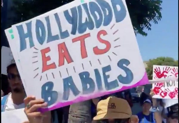 … Yes, a roving group of the absolute stupidest people in the nation got together on Friday to March on Hollywood, including to the CNN building, in order to absolutely demand that people stop eating babies.