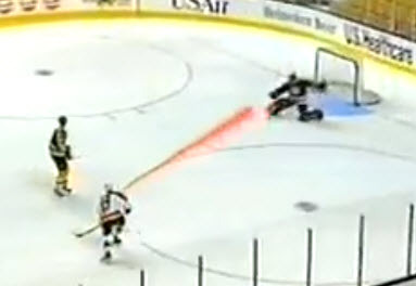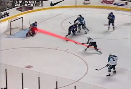 They can do it electronically for the TV audience. Here, I’ve whipped up a simulation. Not sure why the field is white, or why the players have sticks, but whatever.
