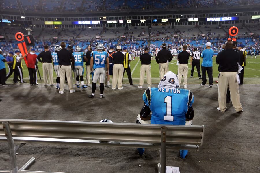 Why should I? Can and his silly dancing and superman schtick have dominated sportscenter this year. Cam was also well known for his pouting when things weren’t going his way earlier in his career.