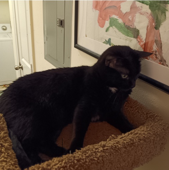 She’s on the same perch of her cat tree as in the January picture (I don’t know what she just spotted), just so I can say “Am I crazy, or is that cat bigger?”
