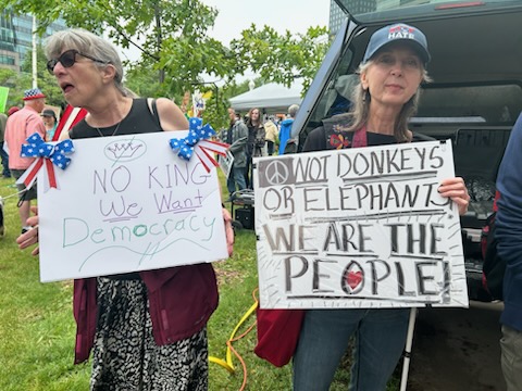 I love reading these reports. I had intended to go to the combined No King/Pride parade in Boston (“No King, Yaaasss Queen”) to cheer them on, but then two days ago I thought to ask my old company (that I retired from five years ago) if they were marching in it, and they were, and I asked if I could march with them, and they said they’d be delighted to have me, so I saw the parade from the inside and waved a flag and handed out a bunch of pride flags and pride sunglasses, and the positive energy was fantastic. People really can be lovely.