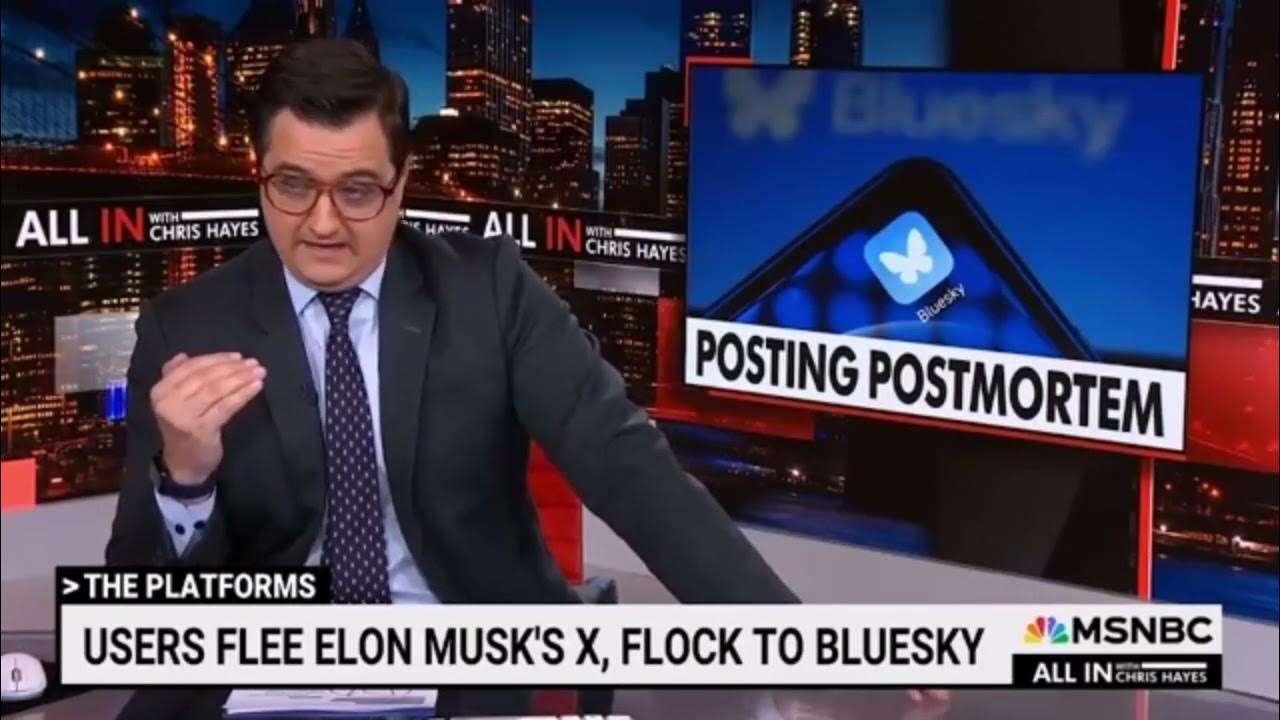 Last night, MSNBC’s Chris Hayes did a prime-time story on the recent and growing success of Bluesky as an alternative to X. I hope it helps move both media organizations and followers: