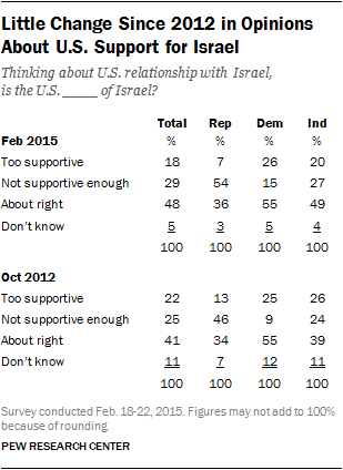 American jews line up with Dems in the number who think current support for Israel is “about right”, at 54%, and don’t really come close to the Repubs level for "not supportive enough " at only 31%.